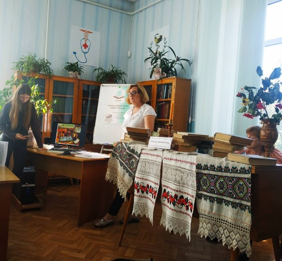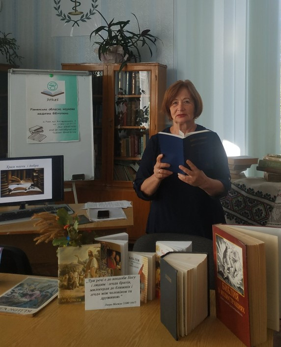 30 вересня в нашій країні відзначається Всеукраїнський день бібліотек. Напередодні свята бібліотекарі РМА зустрілись зі студентами I курсу відділення "Сестринська справа". Провідний бібліотекар Карпенко Тамара Наумівна розповіла про найвидатнішу книгу людства "Біблію", її роль в історії, культурі, філософії, моралі. Провідний бібліотекар Корнійчук Марія Володимирівна ознайомила присутніх із значенням книги в житті людини. Студенти поділились інформацією про історію створення книги, розвиток книгодрукування, поширення книги в сучасному світі.