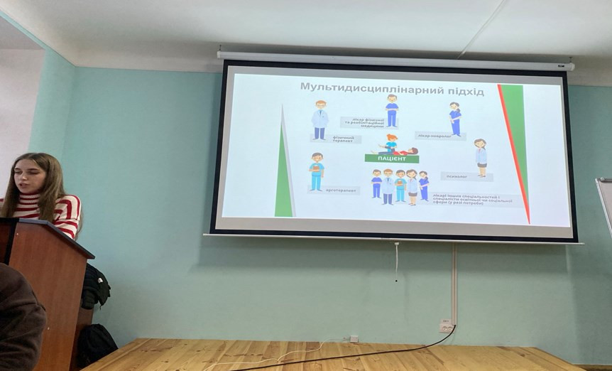 Були продемонстровані особливості фізичної терапії хворих з руховими порушеннями, принципи відновлення функціонального стану м’язів, можливості роботи з пацієнтами із спастичністю, методи переміщення пацієнта та різноманітне реабілітаційне обладнання.