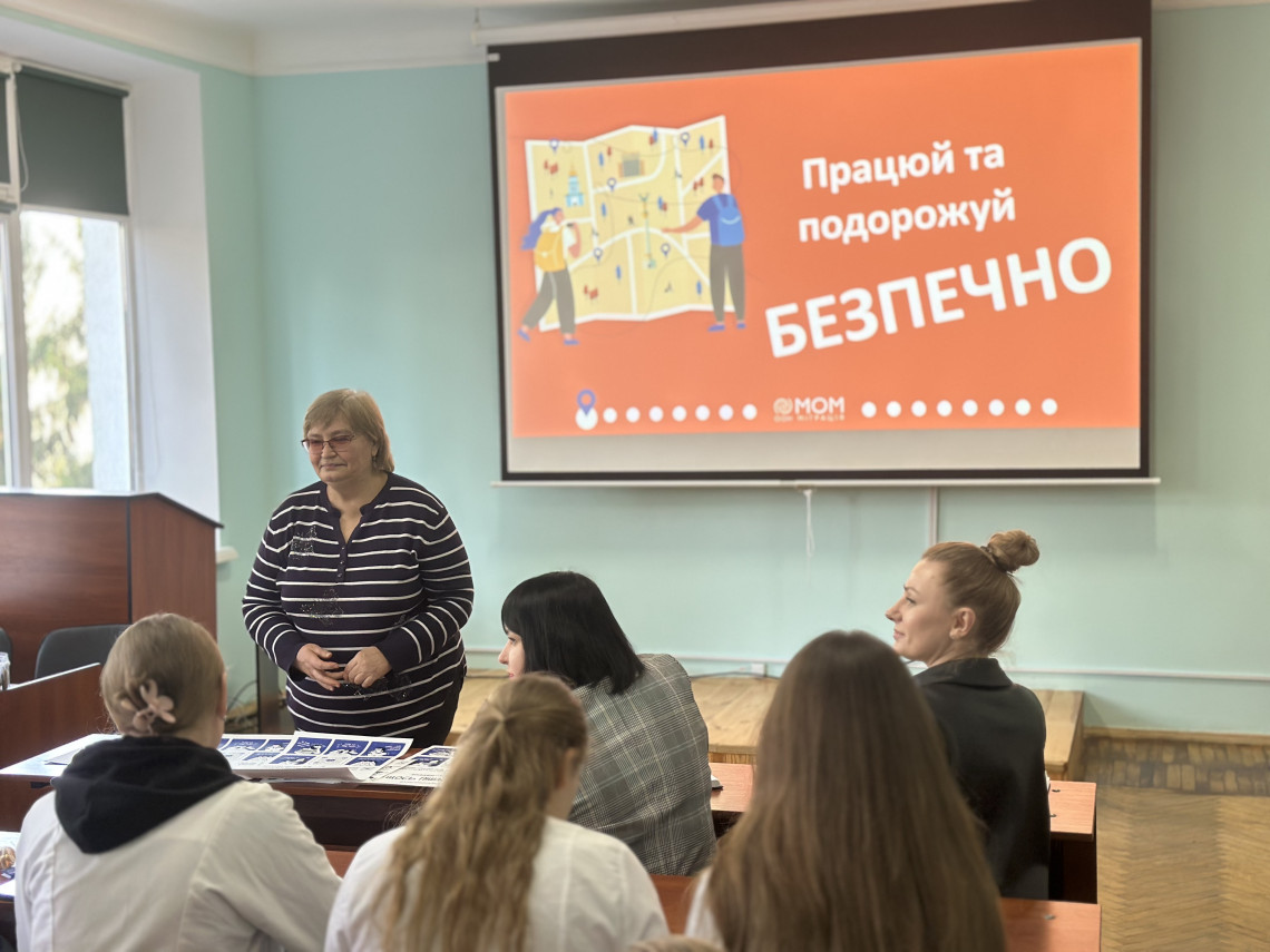 Тренінг провела команда ГО "Центр "Чайка" у співпраці з Міжнародною організацією з міграції, представництво в Україні. Зі студентами говорила про те, як розпізнати ризики торгівлі людьми, уникнути небезпечних ситуацій під час працевлаштування чи подорожей та куди звертатися по допомогу.